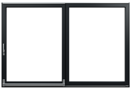 2 - Baie coulissante PSK automatique avec système à déboitement automatique. Le coulissant se déboite en parallèle puis coulisse sur la partie fixe.